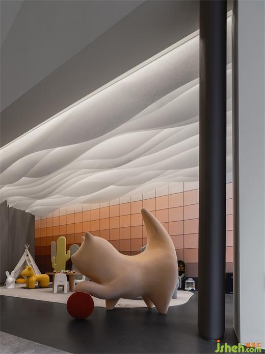 鮮明的色彩與柔軟的曲線是兒童娛樂(lè)區(qū)的特點(diǎn),輕巧可愛(ài)的動(dòng)物裝飾與玩偶構(gòu)建了一片屬于孩子們的游樂(lè)園。