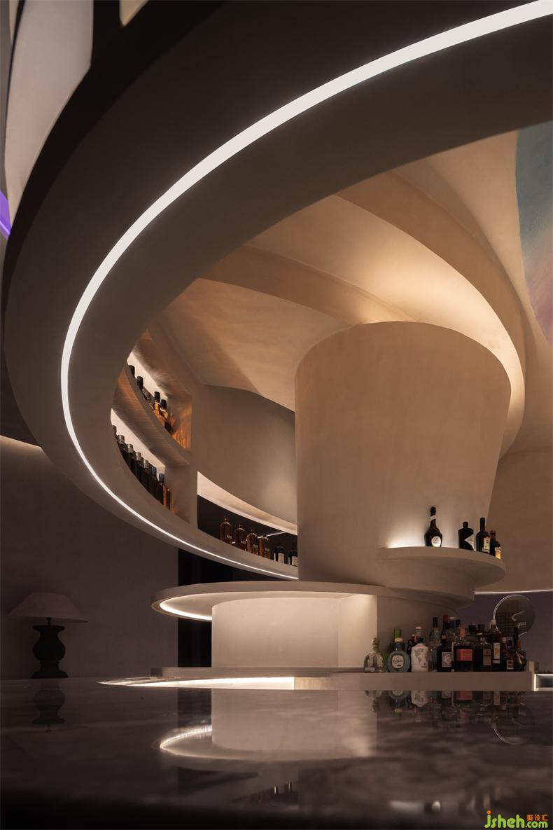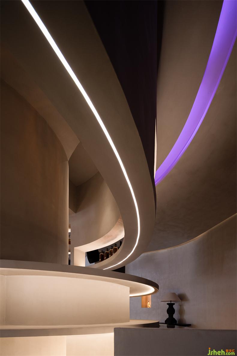 「虛擬」和「真實(shí)」之間的對(duì)比也體現(xiàn)在酒吧室內(nèi)和室外交叉點(diǎn)的設(shè)計(jì)中。景觀設(shè)計(jì)中常用的借景手法,通過(guò)處理周?chē)蜐B透之間的關(guān)系來(lái)實(shí)現(xiàn)空間的個(gè)性化效果。虛實(shí)融合不僅能滿足不同空間的不同功能需求,還能表達(dá)清晰的空間邏輯關(guān)系。