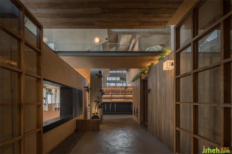 迭代設(shè)計展現(xiàn)了社區(qū)關(guān)系錯位的變形,以空間幾何為前提,街巷尺度和院落關(guān)系引導(dǎo)了設(shè)計進一步的發(fā)展。這種設(shè)計思路轉(zhuǎn)化為平面的表現(xiàn),體現(xiàn)為一系列院落、室內(nèi)、走廊的變形。餐廳設(shè)計多邊形幾何體系構(gòu)成了內(nèi)建筑的尺度系統(tǒng),而步道則將戶外空間的室內(nèi)、階梯和轉(zhuǎn)角連接起來,豐富了其空間效果,與社交性相得益彰。