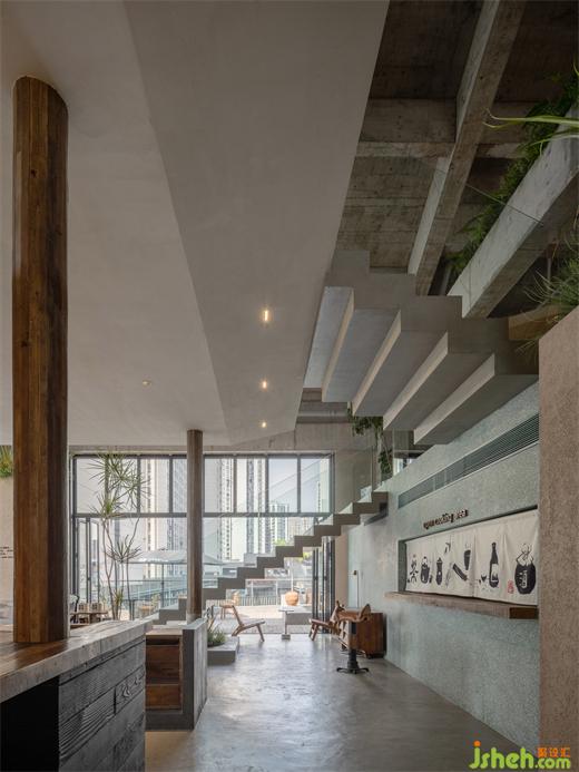 空間結(jié)構(gòu)呈現(xiàn)出了獨(dú)特的懸空盒子形態(tài),讓每一個(gè)空間都擁有了特殊的氛圍和功能,而嵌套的體量邏輯和路徑化的空間結(jié)構(gòu)則讓人們可以穿行于各個(gè)小空間之間。令人驚喜的布局和形態(tài)錯(cuò)位,餐廳設(shè)計(jì)使得每一個(gè)觀察者在空間中行走和觀察時(shí)都能不斷地發(fā)現(xiàn)新的景觀和視角,從而激發(fā)了他們的好奇心和探索欲。此外,錯(cuò)位的空間不對(duì)稱(chēng)性和變化尺度也增強(qiáng)了空間的活力和生命力,讓人們?cè)诳臻g中感受到一種動(dòng)態(tài)的氛圍。