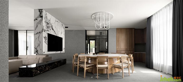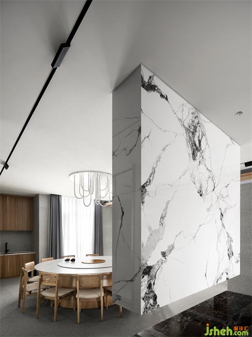 會所設計以平凡的材料構建不平凡的空間。整體空間大量運用素雅的天然白麻,客餐廳區(qū)沒有過多繁瑣造型,給人以平靜休憩之感。樓梯過道區(qū)造型張揚,但卻被麻石的屬性賦予空間一分含蓄,平易近人也不乏氣場。Build extraordinary space with ordinary materials. The overall space uses a large number of elegant natural white linen, and there is no too tedious shape in the dining room area, giving people a sense of calmness. The stairway the aisle area is full of shape, but it is given a subtlety space by the attributes of Mashi, and it is also easy to be in the field.