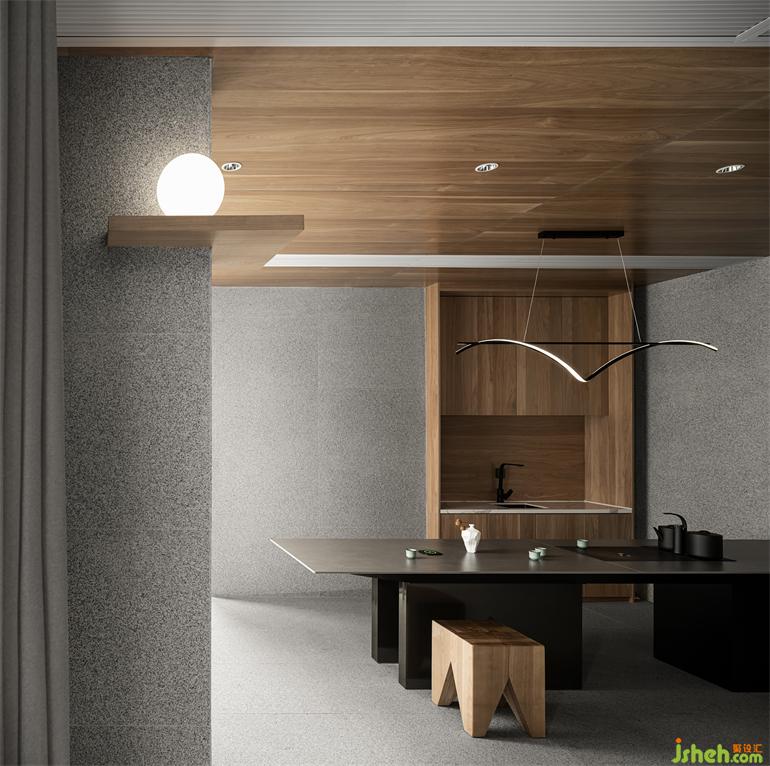 這是一個以私宅為背景的會所設計空間,既有接待娛樂的高級體驗感同時也保留私宅具有的愜意隨性。天然的麻石和原木色的搭配容易讓人產生一種輕松感,使空間保持著開放性,含蓄卻不低調