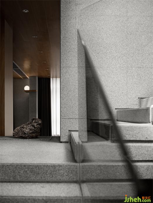 弧形的扶手替石材的硬朗增添一絲柔美,會所設計豐滿空間情緒,更具神秘探索感。