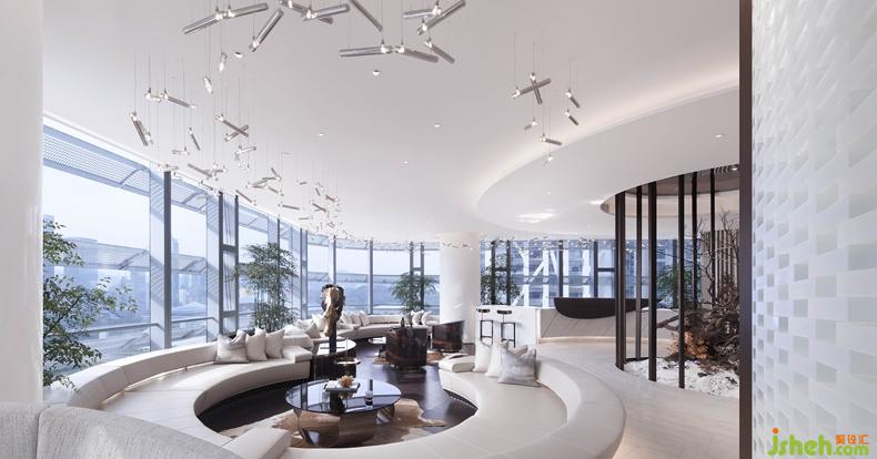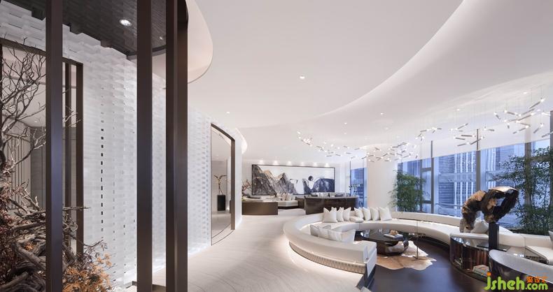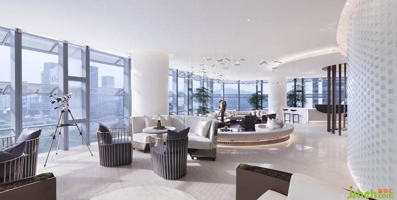 下沉式的漣漪狀沙發(fā)組團(tuán),按游艇級別打造,同時方便俯瞰市民中心CBD中心公園的壯麗景觀。
