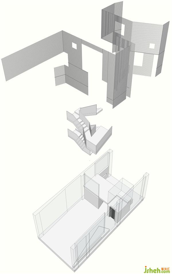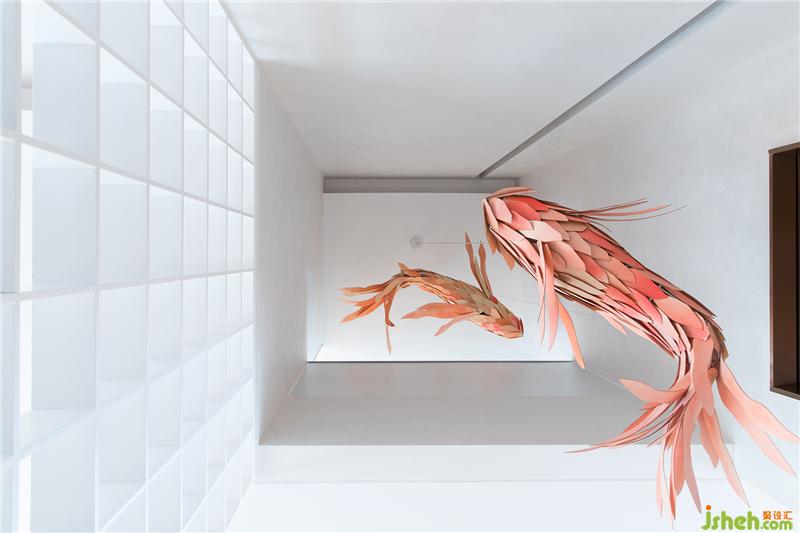 進(jìn)入設(shè)計(jì)的實(shí)質(zhì)階段,所遇最大障礙是空間太小,把所有功能全塞進(jìn)去,已無(wú)騰挪余地,若僅至此,則設(shè)計(jì)了無(wú)意趣,正膠著,突發(fā)靈感,用兒時(shí)的折紙游戲?qū)4紙又折、又疊又撕,但始終完整不斷,將橫向,縱向多個(gè)空間聯(lián)結(jié)一體,使人游走其間可交流,可互動(dòng),可停駐,可回望,仿佛一座立體的空中院落,通過(guò)對(duì)各空間功能性的消解,讓人可以輕松進(jìn)入一種放松和冥想的平靜狀態(tài),與事茗應(yīng)該是一種最理想的境界吧。