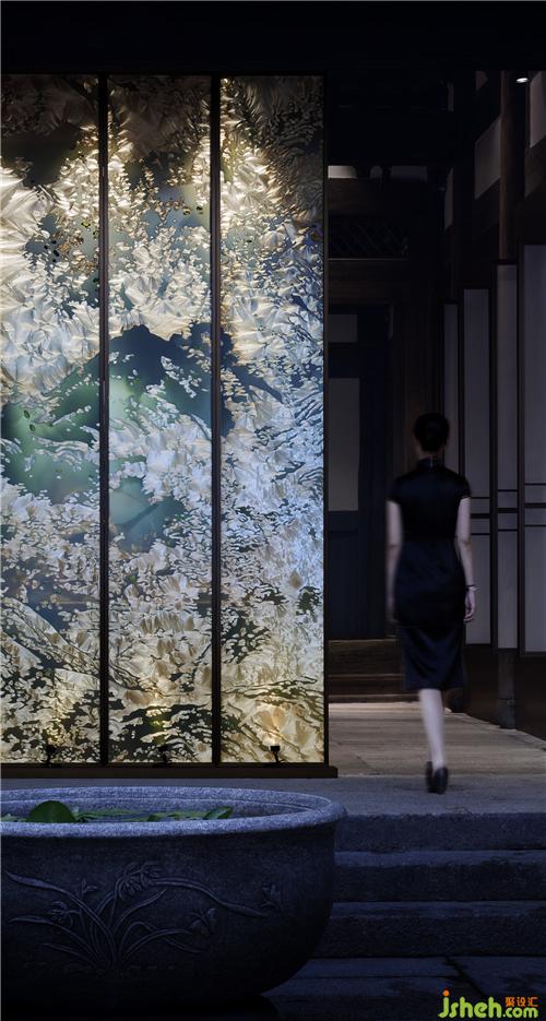 洽談區(qū)沙發(fā)背景的金屬裝置屏風(fēng),由縱向串聯(lián)的金屬片穿插連接,每一片都經(jīng)過精心的手工打磨,通過轉(zhuǎn)動(dòng)單片的方向,構(gòu)成不同造型,整體塑造出不同走勢(shì)的山體造型,整體觀感極具東方韻味。所有的設(shè)計(jì)語言不在乎其形式,所在乎的是以人為本的概念,大到空間氛圍營(yíng)造,小到每一件器物擺件,均能令觀者靜心體驗(yàn)。