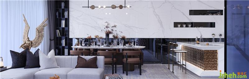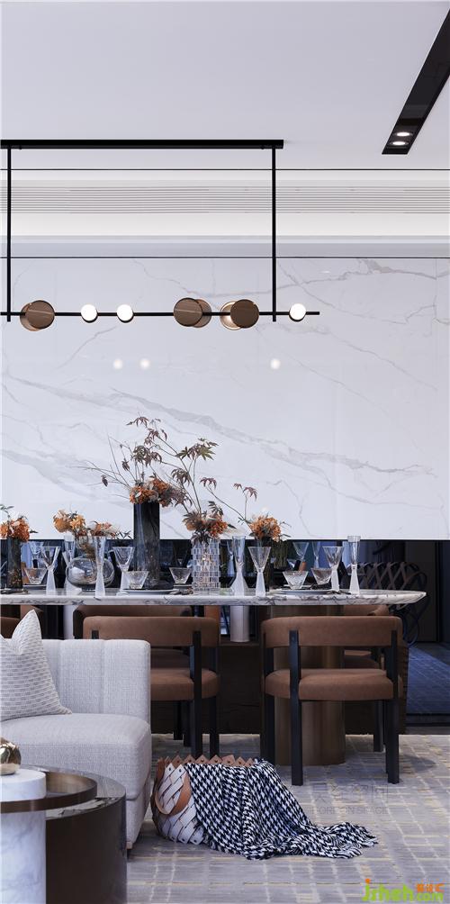 客餐廳采用大橫廳的設(shè)計(jì),大空間尺度的客廳和超長的景觀陽臺(tái)完美融合,