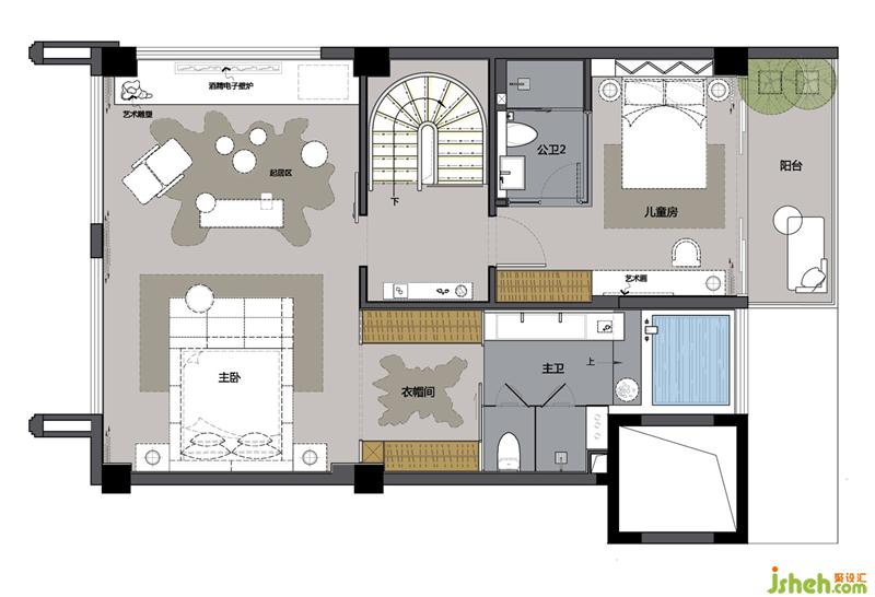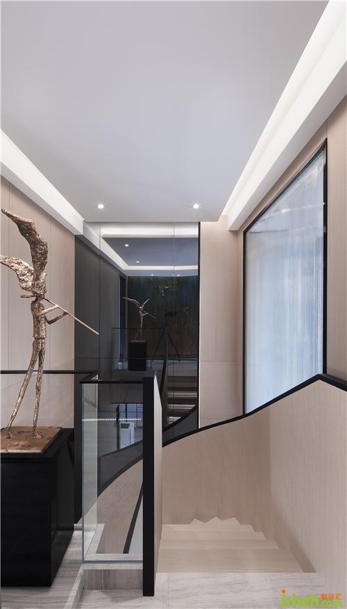 旋轉(zhuǎn)樓梯貫穿整體空間,猶如大型雕塑串聯(lián)著每層過(guò)廳的藝術(shù)品,產(chǎn)生趣味性的情景對(duì)話(huà):晚色從陌生的樹(shù)木中走來(lái),成都樣板房設(shè)計(jì)像夜間的小路,正靜悄悄地聽(tīng)著回憶的足音。“吹笛少年”在一處?kù)o靜的吹奏,