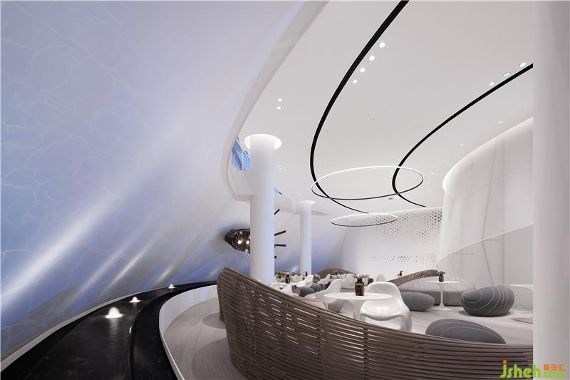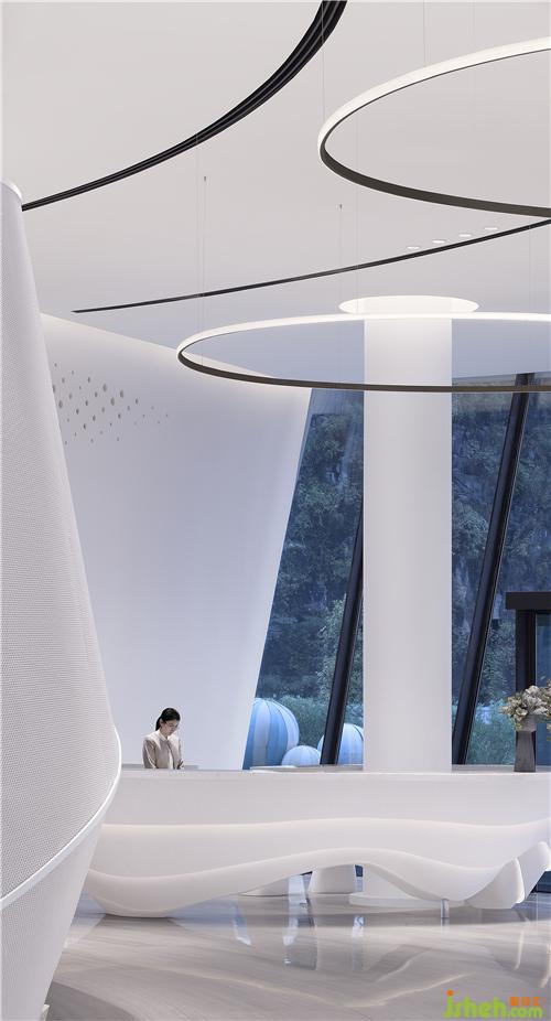整個藝術(shù)中心內(nèi)部空間的設(shè)計靈感緣起于鳳凰衛(wèi)視這枚舉世聞名的“鳳凰標識”,鳳和凰幻化成兩只手合抱成一個不斷旋轉(zhuǎn)循環(huán)的球體,像極了中國的太極圖案,由無玄化出萬物,又像西方的莫比斯環(huán),無限的循環(huán)往復(fù),恰好暗合了西方佛學關(guān)于鳳凰的哲學義理,涅槃重生是鳳凰全部存在的意義。