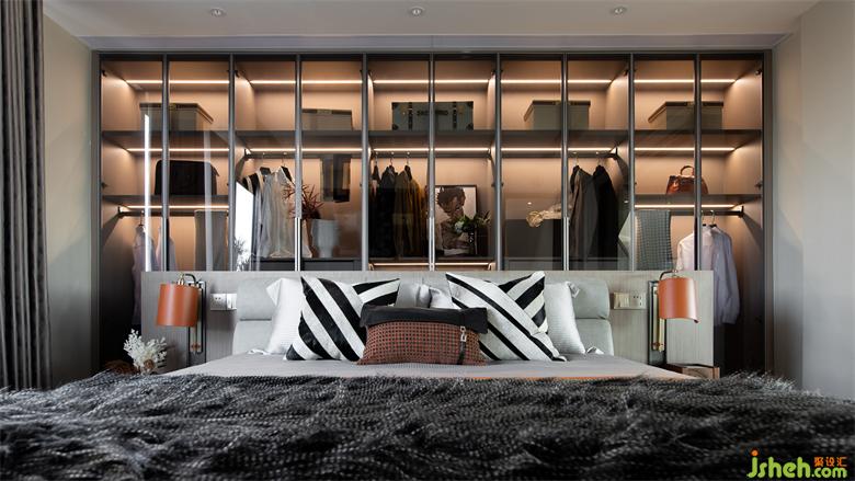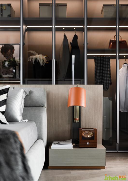 客廳采用純開放式的布局,背面的半通透亞克力手辦展示架擺放著私家收藏的珍貴手辦,展示架后是特意打造的半開放私家電競(jìng)區(qū),閑暇之余,約上三五好友,在此開黑幾把,聊以?shī)是椤?