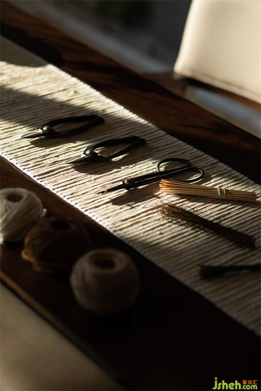 冥想室,呈現(xiàn)濃厚書卷氣,別墅設計以詩禮書香育人,清事雅意訴說著整個空間的沉淀與輕盈,與室外環(huán)境打造出起承轉合有序的動線組織,一脈相承。