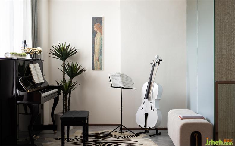 二層家庭廳,鋼琴的主旋律,吉他的和弦,他們哼唱著小調(diào),用音樂在闡述故事,用音樂在互動(dòng)交流,盡享天倫之樂。
