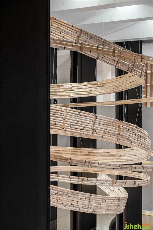 視覺終端的大型旋轉(zhuǎn)樓梯是通往二樓的主通道,樓梯底部踏步結(jié)合水景,長沙售樓處設(shè)計組合成名為“汲泉”的室內(nèi)活水造景。站在樓梯上倚欄回望,整個空間盡收眼底。