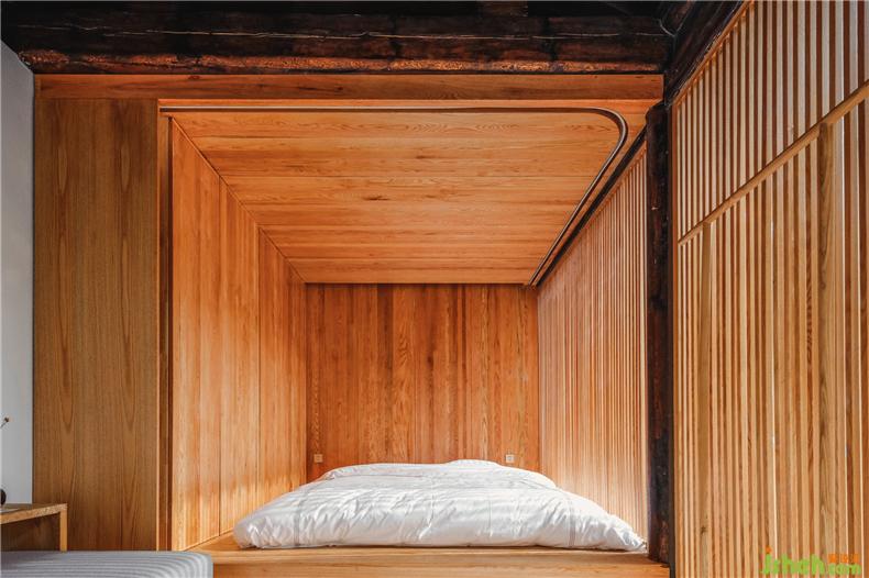 小院兒的使用主要作為城市公共活動空間,同時也保留了居住的可能性。別墅裝飾四間房屋可被隨時租用來進行休閑、會談、聚會等公共活動;同時也可以做為帶有三間臥室的家庭旅舍。別墅裝飾整合式家具用來滿足空間場景的這種彈性切換。東西廂房在原有木框架下嵌入了家具盒子。木質(zhì)地臺暗藏升降桌面,既可作為茶室空間,別墅裝飾也可以作為臥室來使用。北側(cè)正房也設(shè)有翻床家具墻體和分隔軟簾,同樣可以滿足這種多用需求。