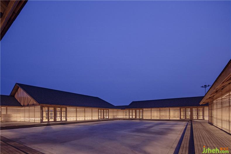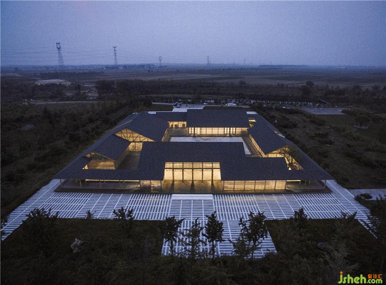 整體建筑由四個相對獨立的房屋圍合而成,裝修設(shè)計分別是原料庫、磨坊、榨油坊、包裝區(qū)。內(nèi)庭院作為糧食的曬場,圍繞內(nèi)庭院形成便捷的工作循環(huán)流線。建筑的邊界是聯(lián)通四個分區(qū)的外部游廊,這是參觀糧食作坊的流線。中心庭院向建筑四周錯落延伸,拓撲組合成為多層次的庭院空間,滿足廠房的自然通風(fēng)、采光及景觀需求,裝修設(shè)計保持良好的室內(nèi)外空間品質(zhì)。院與房的有機聯(lián)系使得建筑在一個完整的大屋頂下產(chǎn)生多種跨度的使用空間:小尺度的游廊、中等尺度的房間、大尺度的廠房,裝修設(shè)計可以彈性的適應(yīng)加工作坊的復(fù)合使用要求。