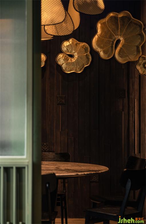 美食廣場設(shè)計(jì)禪意自然的金屬蓮葉飾品