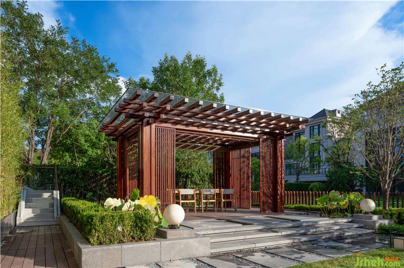 園林設(shè)計(jì)用傳統(tǒng)的儒釋道文化作為基礎(chǔ)底蘊(yùn)設(shè)計(jì)師加入了東方當(dāng)代設(shè)計(jì)手法,庭院吸取儒家的中庸,道家的一生二二生三三生萬(wàn)物,佛家的空和靜,中正與平穩(wěn),東高西低非富即貴是設(shè)計(jì)的中心理論,四面環(huán)水的茶亭屹立東方,四平八穩(wěn)的火塘與休閑區(qū)高低錯(cuò)落相得益彰,林間微風(fēng)更加強(qiáng)了這一景觀的寧謐之感與戲劇張力。