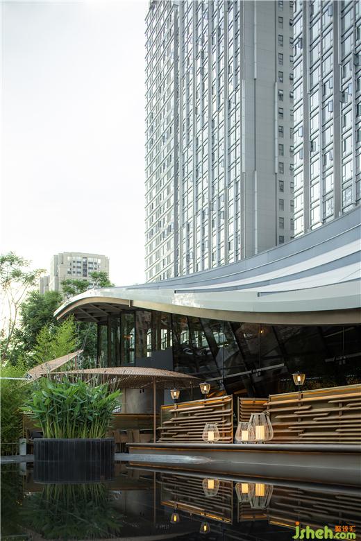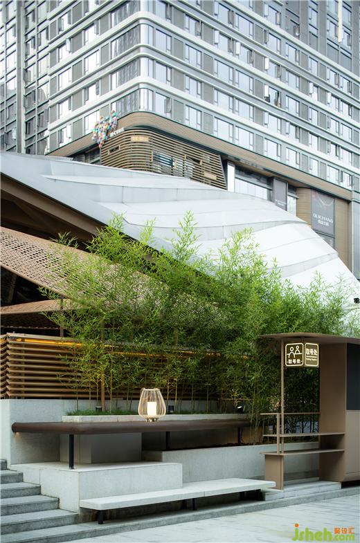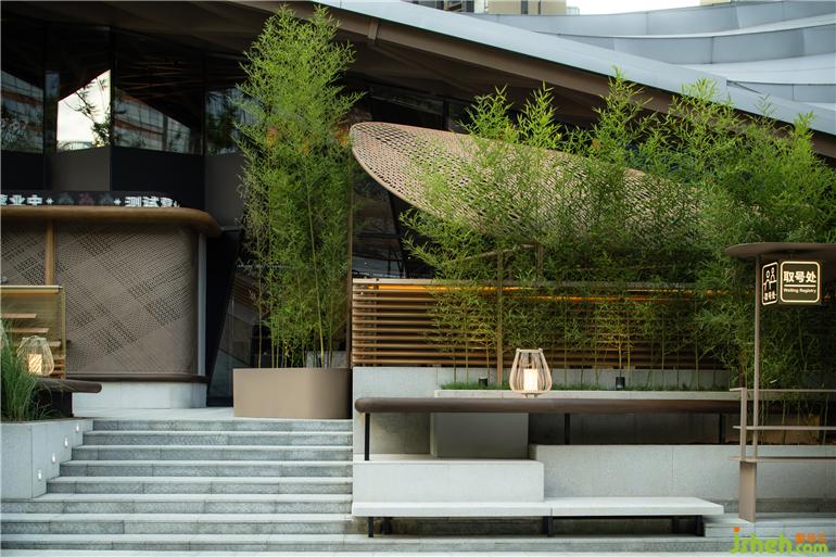 在將所有外景最大化借入的前提下,自由與圍合式的布局形態(tài)填滿建筑內(nèi)部,用以滿足商業(yè)指標(biāo)的嚴(yán)格規(guī)則。火鍋店設(shè)計(jì)重點(diǎn)的入口與外擺區(qū)域,以及和建筑的關(guān)系,強(qiáng)調(diào)了漫步、過(guò)渡、治園的情緒設(shè)計(jì)。