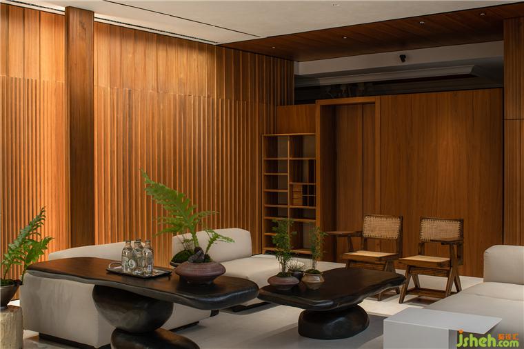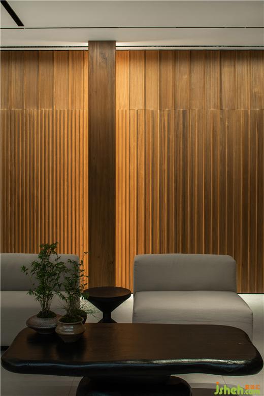 設(shè)計(jì)師讓木頭的肌理與空間劃分、穿插形成氣韻一體的整體意象,這是一種對(duì)精細(xì)的理解,它暗喻出生活的有序、典雅與時(shí)尚的結(jié)合、充滿靈性。