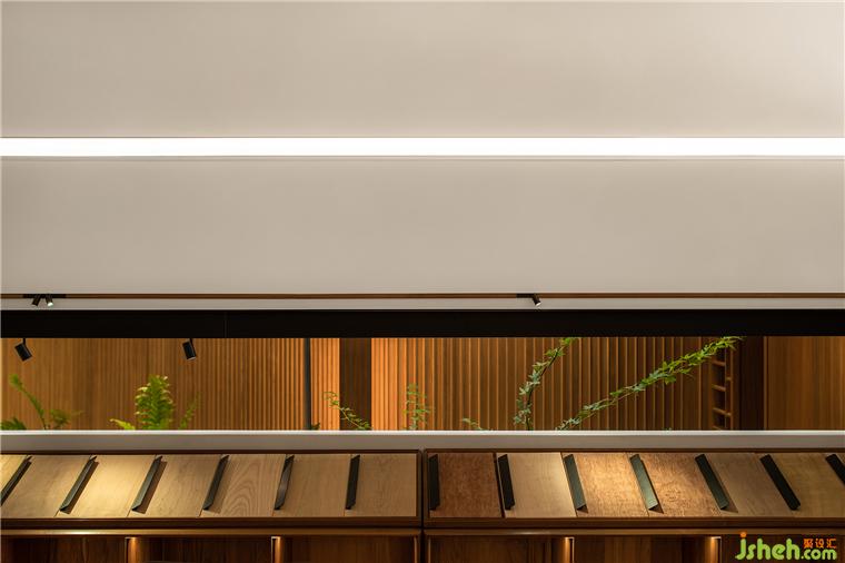 最引人矚目的是在區(qū)域劃分上,設計師讓不同屬性的空間交匯在頂部,而不是常規(guī)的地面抬升。展廳設計師在這里讓燈光的區(qū)域突變,線條靈動而簡約而優(yōu)雅,工藝細膩。