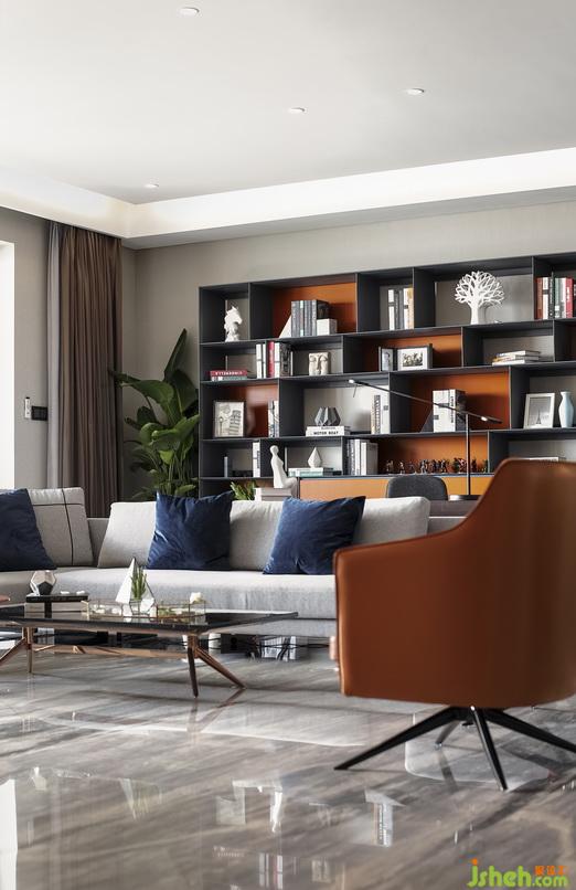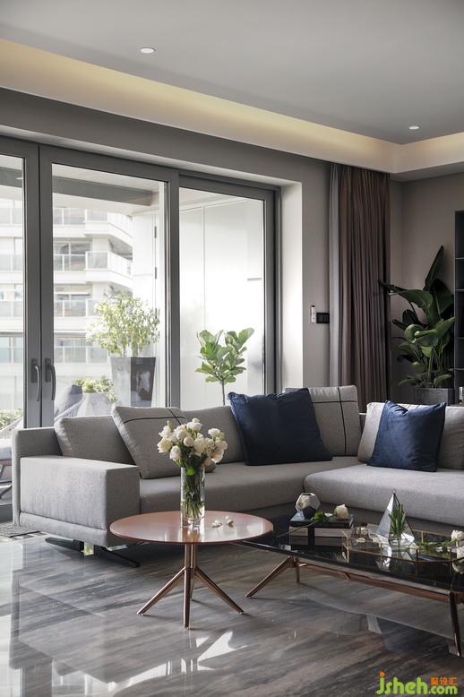客廳的一派灰色在自然光里,映現(xiàn)出靈動(dòng)韻律感,搭配橙、藍(lán)兩色,簡(jiǎn)約流暢的線條設(shè)計(jì),勾勒出不斷增添的生命活力,令人徜徉其中,倍感愉悅。