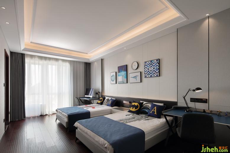 雙床房當然是更大可能的滿足居住需求,各式藍色掛畫、桌椅和抱枕,彼此呼應,打造出平靜舒適的休息環(huán)境