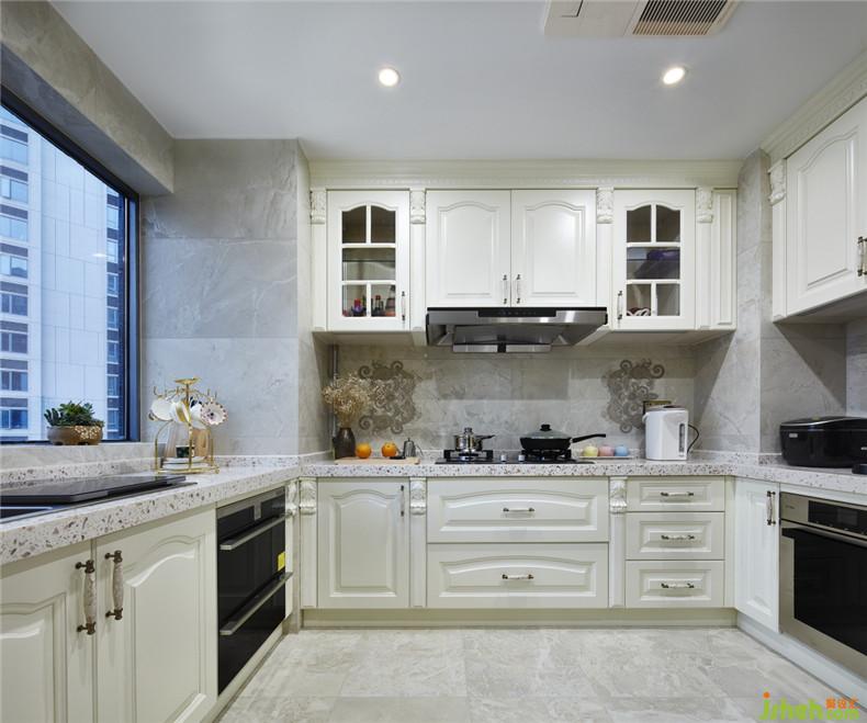 廚房的設(shè)計(jì)以白色、灰色為主,更顯干凈、整潔和簡樸,閑暇時候,兩個人可以在寬敞的廚房,共同做一桌佳肴,要知道,用愛烹飪出的食物更讓味蕾歡愉。