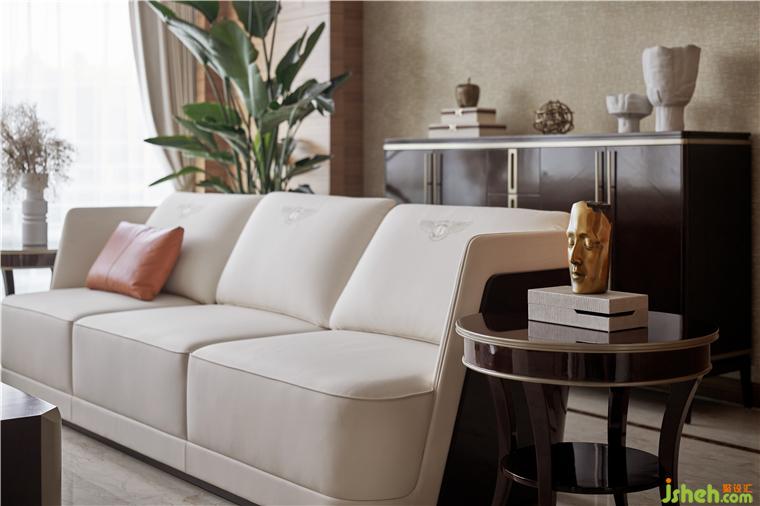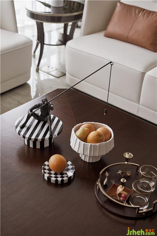 客廳背景以極具質(zhì)感的紋理大理石為主,配合優(yōu)雅的墻面色系,白色沙發(fā)皮質(zhì)細(xì)膩柔軟,又恰到好處的平衡空間色彩,剛?cè)岵?jì),加上不經(jīng)意擺放的各類擺件,悄然流露出居住者的藝術(shù)品位。