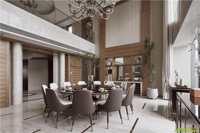 餐廳在溫色域里渲染大理石與原木的濃郁與內(nèi)斂,交織色彩的雙重特性,暈散出大氣奢華的居家想象。家裝設(shè)計(jì)中,桌插的樹柳,北美胡桃木拼花桌,精致的瓷具,意大利小牛皮餐椅,無不傳達(dá)著獨(dú)特的港式精致。