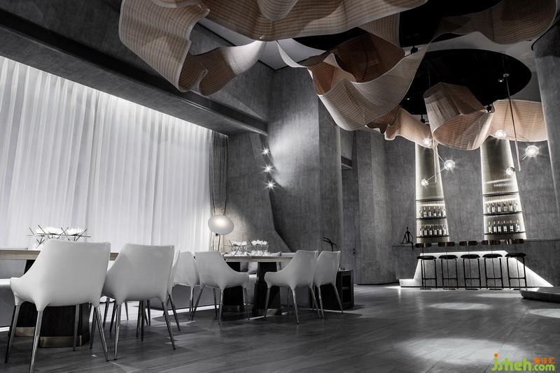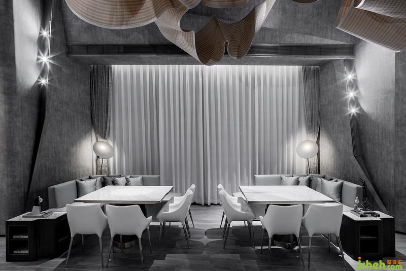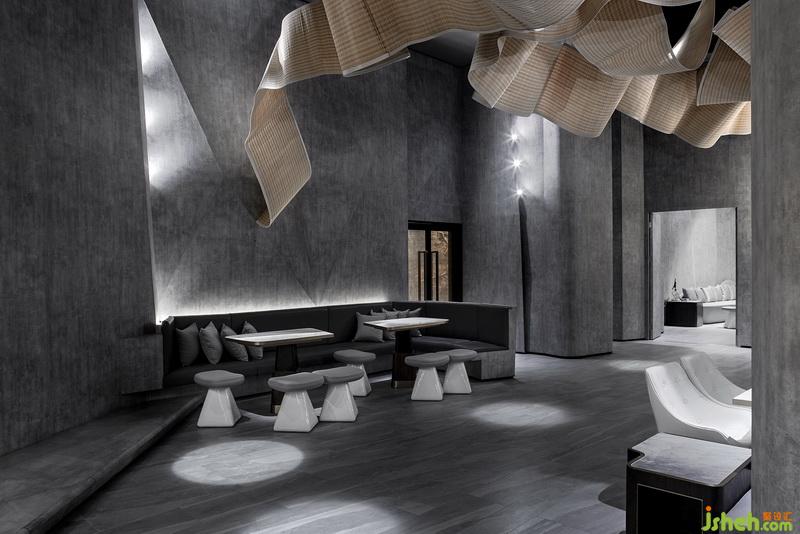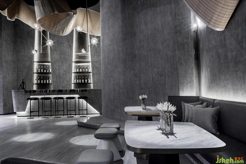 然而置身于快速發(fā)展的時代,生活疾駛而過,現(xiàn)代人急忙追趕,難以放緩心靈享受趣味人生。觀察時代這幅畫,懷抱著細(xì)膩敏感的心靈,室內(nèi)設(shè)計師試圖通過設(shè)計讓現(xiàn)代人于休閑娛樂之中舉觴相慶,共享喜悅。故設(shè)計師從古代習(xí)俗“曲水流觴”中獲得靈感,替之為“曲水流思”,意味著人們在本案中歡聚一起,分享生活,喧囂之中,獲得喜樂。