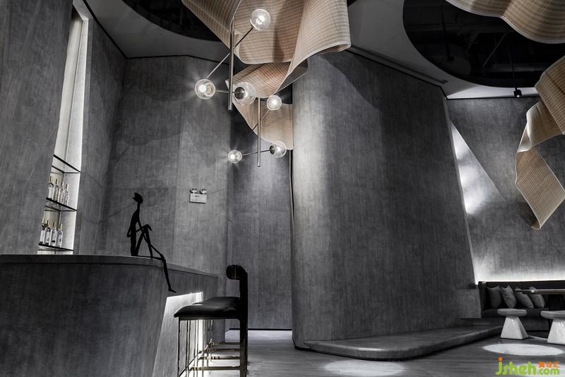 無論是舞龍中人為靈動的線條,還是山水所呈現(xiàn)出的自然紋理,都具有一種流動之美。室內(nèi)設(shè)計師將其運(yùn)用于天花構(gòu)造上,利用竹片打造流水紋理之狀,形態(tài)婉轉(zhuǎn)流動,有著靜極思動之勢。宛如中國的草書,狂亂中帶有優(yōu)美,這突破常規(guī)的構(gòu)造,不僅為娛樂場所帶來自然間流動韻律,深化空間的高級質(zhì)感,也讓視線收獲難以預(yù)料的驚喜。