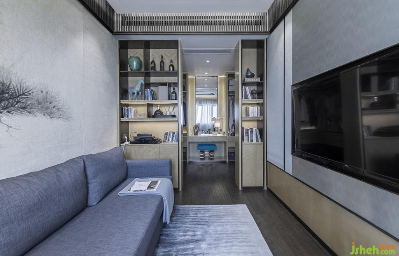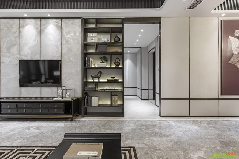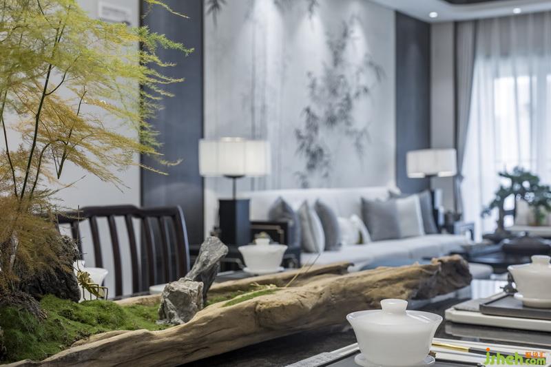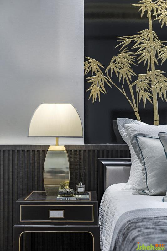 本案將玉石運用于客廳以及臥室的背景墻,佐之于竹元素作為裝飾,讓人隨著環(huán)境光影觀賞石墻之時,亦能感受到竹之韻。至于家具的選配,則以簡約造型與舒適質感為主,同時注重其藝術觀賞性,多以古玩掛畫作為裝飾,使功能空間與藝術氛圍相結合,形成有機的整體。