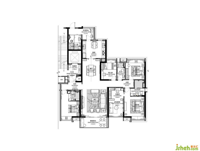 本案將與主臥相聯(lián)的景觀陽臺進行改造,將其打造成休息室兼衣帽間,不僅保證了衣帽間的獨立,也給空間注入生活氣息,屋主能在空間里卸下疲憊,靜享寧和。為了讓輕松的氣氛在家居空間流動,室內設計師充分考慮到屋主的興趣愛好,將工人房改造成棋牌室,引用海派中式風格設計,對原有結構、家具的尺度和藝術、燈光元素進行重組,帶來棋牌室空間的新變化,讓生活與樂趣相融。