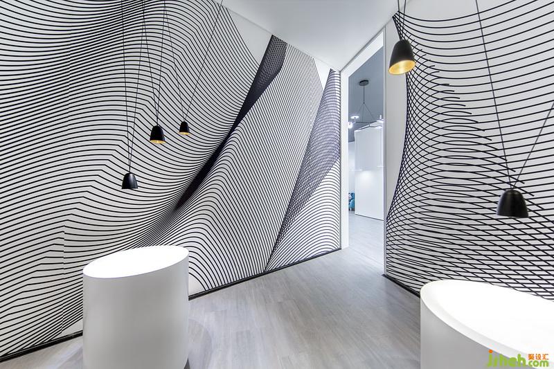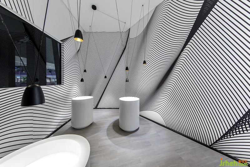 當光映射進場地,畫出鬼斧神工的切線,仿佛把空間切割成不同的層次。利用光影切割這一自然藝術,室內設計師將空間體塊進行切割,在大展廳里面打造多個充滿個性、擁有利落線條的燈飾產片系列小展廳,創(chuàng)造空間的層次感以及穿透感。同時以光影塑造空間形體,讓空間線條如同光線一樣流動自如,給整個空間帶來流暢自然的感覺。整個空間透露出現代簡約氣息,卻又展現不凡的設計理念。
