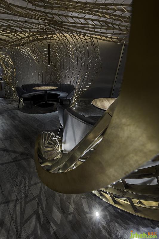 植物之所以能夠奮發(fā)生長(zhǎng),是以脈絡(luò)為支撐,汲取光和熱,最終以成熟誘人的形式呈現(xiàn)。為了響應(yīng)餐廳的主題,賦予本案空間自然的力量,設(shè)計(jì)師抽取自然植物中根枝葉的形態(tài)脈絡(luò)作為元素,將其形態(tài)進(jìn)行簡(jiǎn)化、衍生和創(chuàng)作,構(gòu)造出流暢自然的線條,最終形成新的設(shè)計(jì)符號(hào),從而折射出更大的想象世界。
