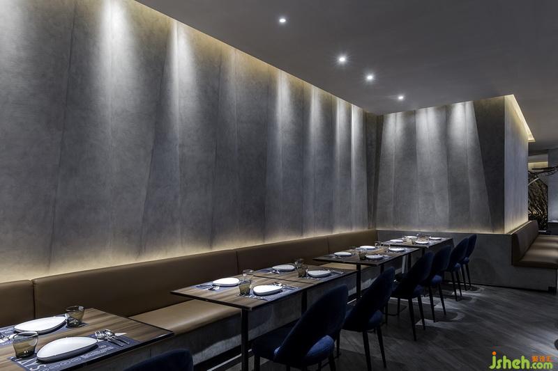 在半封閉的包房之中,在共享式長餐桌之上,設(shè)計師以數(shù)百盞光纖燈打破空間原有的框架,自高空此起彼落地垂吊而下,構(gòu)成了室內(nèi)空間中獨有的無垠森林,讓光影錯綜與自然林景的輪廓結(jié)合,交織出自然神秘的用餐氛圍。