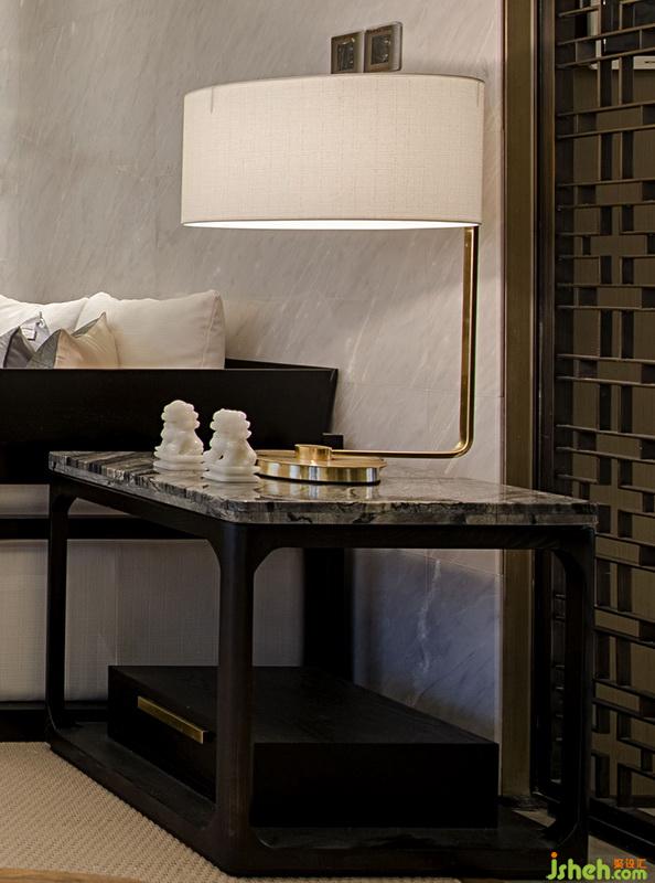 主臥的空間線條干凈簡潔,如澄瑩水色平流緩進(jìn),設(shè)計(jì)師再采用淡雅的色彩語言增添溫潤質(zhì)感,摒棄過于繁瑣的裝飾,以精美壁畫、造型不一的坐燈以及詩意陳設(shè)物品來讓整個(gè)空間顯得清靈雅致,又極具現(xiàn)代機(jī)能。