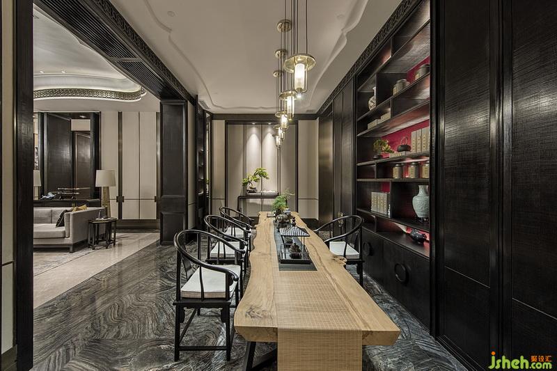 設計師立求在細微之處見精致,本案空間多以木質(zhì)為主素材,輔以晶瑩圓潤的器皿、精雕巧飾的裝飾、造型別致的盆栽,突出古樸典雅的空間線條與色彩,傳遞出東方與現(xiàn)代相互交融的美學大觀。