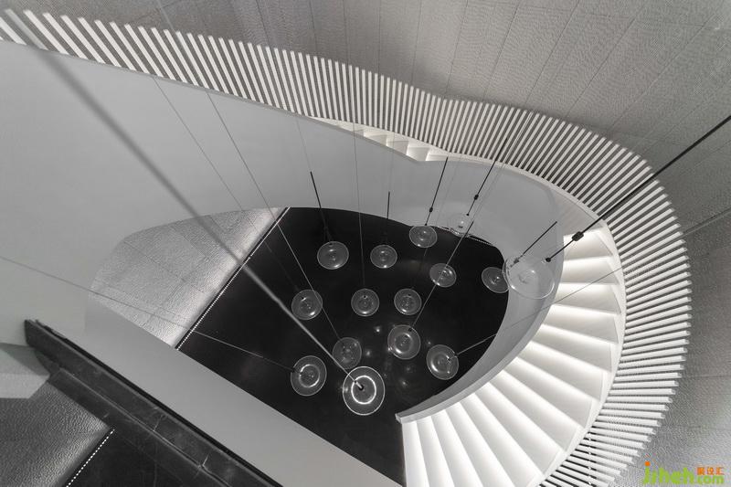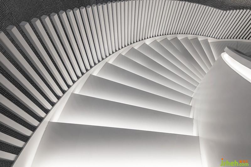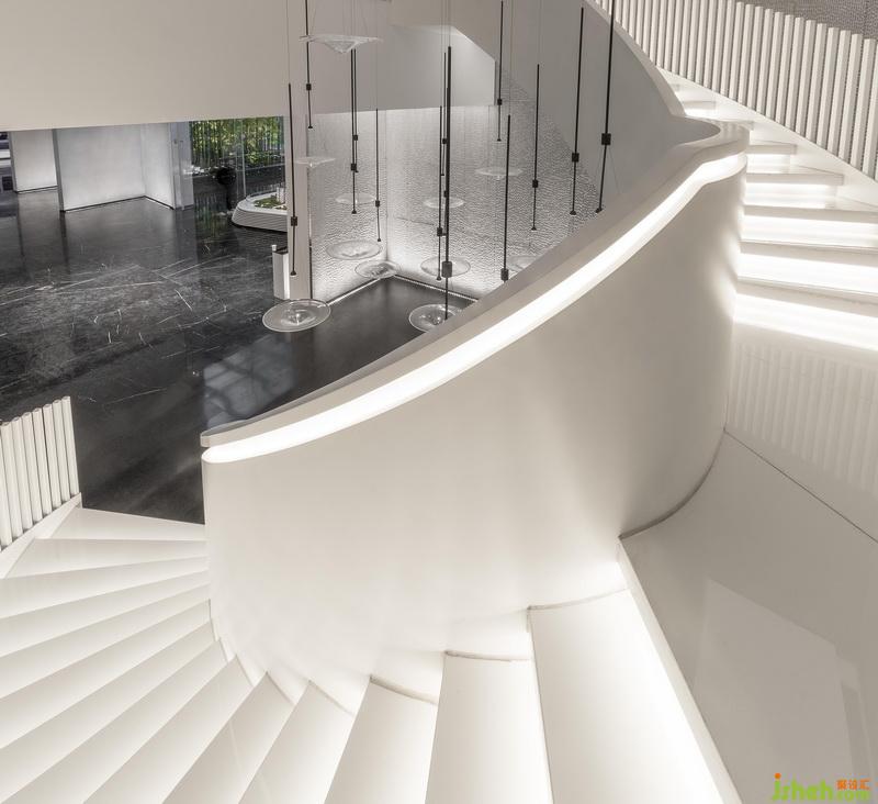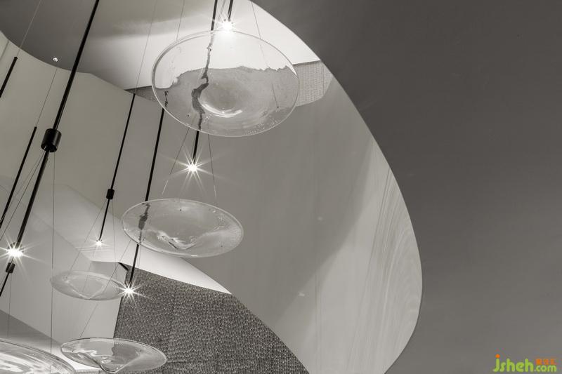 全案采用現(xiàn)代極簡手法繪制空間,以純凈白為主調(diào),不作過多繁雜裝飾,偶有幾抹跳動的藍點綴空間,以此突出自然人文的主題。設計師故意模糊了室內(nèi)與自然的界限,讓人即使身處室內(nèi),視野與心境卻越過空間的限制,與自然展開對話。