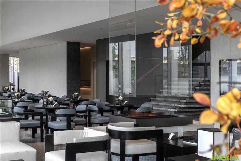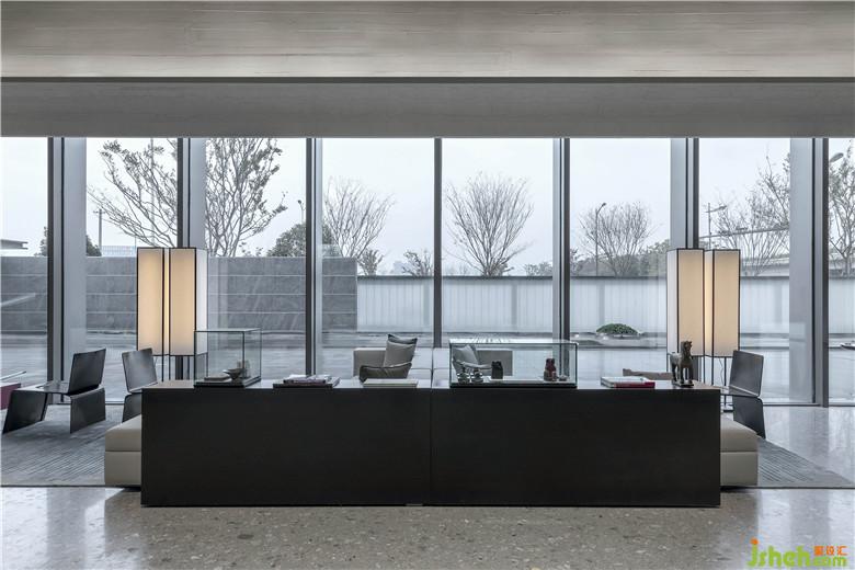 洽談區(qū)采用大面積落地玻璃,庭院之景,為空間增色,春夏秋冬,變?yōu)橐环噬嬜?,人立于室?nèi),與自然產(chǎn)生連接,心境也因此越過(guò)藩籬,感受純粹的安寧。