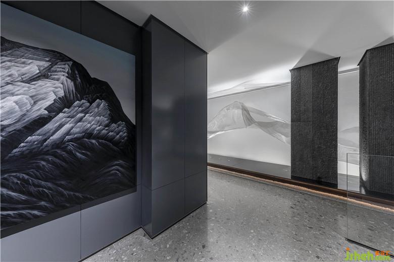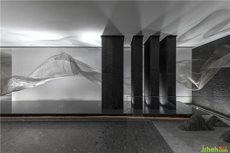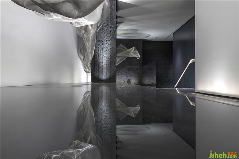 南京河流眾多,盈盈流水哺育了當(dāng)?shù)氐奈拿鳌9试O(shè)計(jì)師將水漾記憶捕捉,水流蜿蜒之形化為藝術(shù)裝置,流動(dòng)于空間當(dāng)中,以此形成韻律。這股溪流澄澈綿長(zhǎng),宛如淌過(guò)“橋梁”,淌過(guò)“山”,同時(shí)又頗具水汽氤氳彌漫之感,構(gòu)建出生動(dòng)的藝術(shù)意象。會(huì)所設(shè)計(jì)