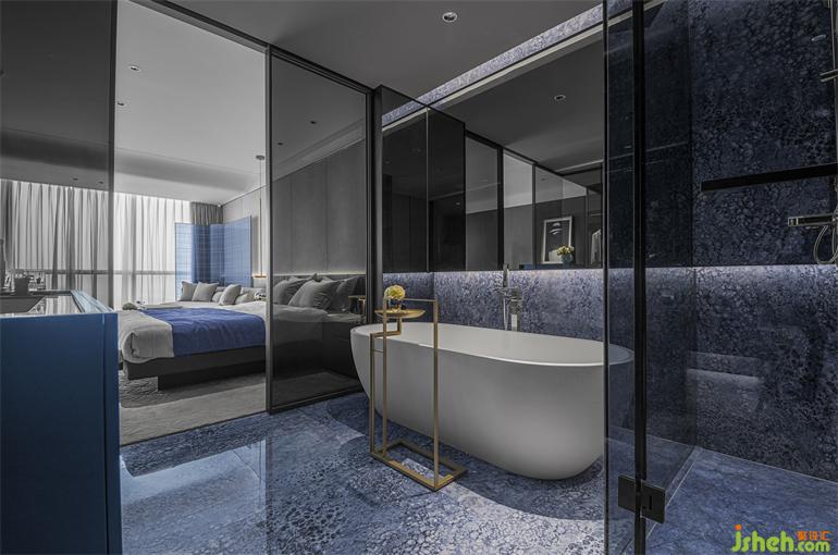 浴室線條簡(jiǎn)練利落,玻璃門設(shè)置強(qiáng)化了場(chǎng)所的穿透感。酒店式雙洗手盆設(shè)計(jì),配備齊全的雜件及洗浴用品,浴室集洗漱、化妝、泡澡功能于一體,樣板房設(shè)計(jì)增加生活的享受和幸福感。華燈初上,在水汽氤氳的朦朧意境中,沉浸于精致生活的無(wú)限歡愉。