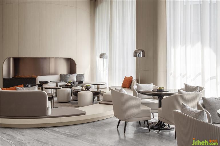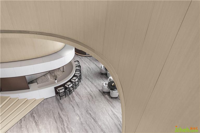 東莞卓越悅山湖花園銷售中心設(shè)計(jì)為了呈現(xiàn)空間的流動(dòng)藝術(shù)感,洽談區(qū)在圓弧的建筑漫步背景下,給予溫暖的包裹。懸浮感的沙發(fā),與落地窗外的水景,地毯呼應(yīng),似流水沖刷到腳背,宛如身處漂浮的游艇之中。