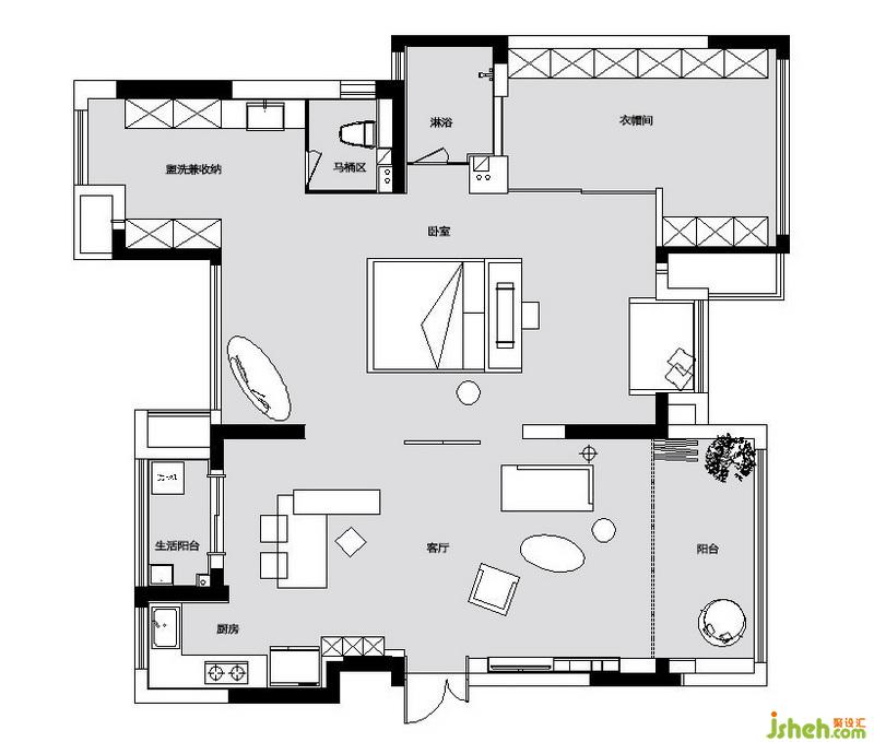 原四室空間,室內(nèi)設(shè)計(jì)師改為一室:一人住。