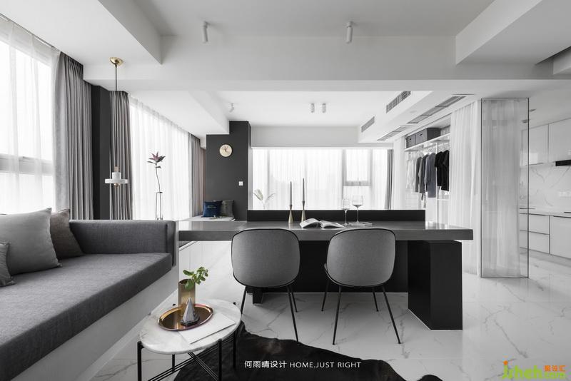進(jìn)門(mén)那一刻,兩面全窗,被灑進(jìn)的陽(yáng)光俘獲。對(duì)于他和她,一如既往最簡(jiǎn)單開(kāi)始——坐具。給冰冷的飄窗臺(tái)增添了豐富的情感,兩人座位剛剛好,坐墊軟硬亦剛好,按季節(jié)心情就這么懶散的微微蜷曲,這是生活上的浪漫奢侈。