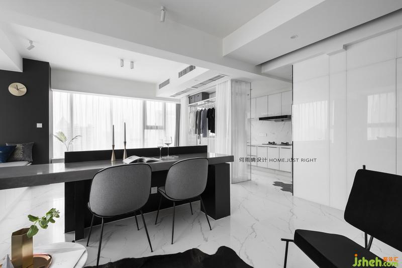 雖不足50平,空間卻盡顯開(kāi)闊。餐桌作為起居室與睡眠空間的串聯(lián),沐浴著陽(yáng)光與星光,都是用餐最好的調(diào)料。室內(nèi)設(shè)計(jì)師