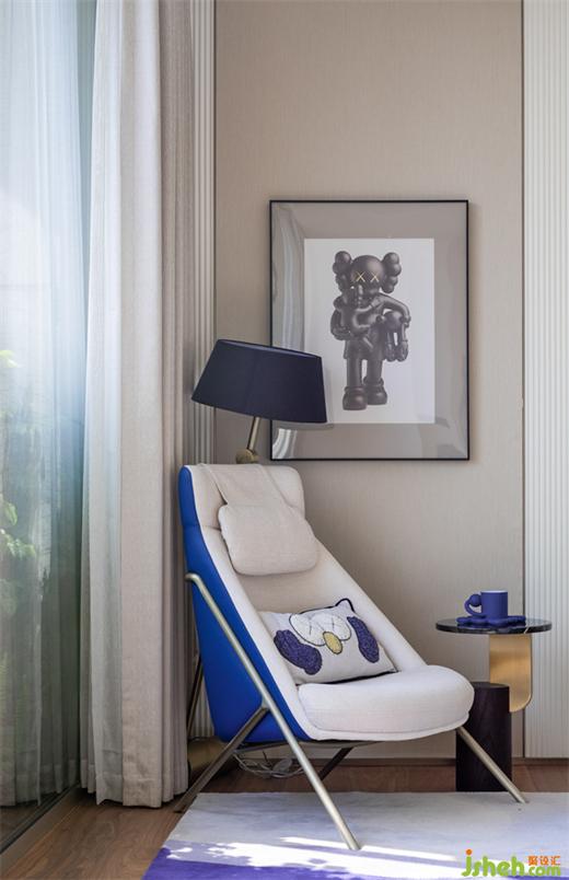 空間延續(xù)藍(lán)色來(lái)凸顯童真與前衛(wèi)的基調(diào),樣板間設(shè)計(jì)意在享受這愜意與平靜的同時(shí)不忘初心,去尋找和追求自己的理想和興趣。