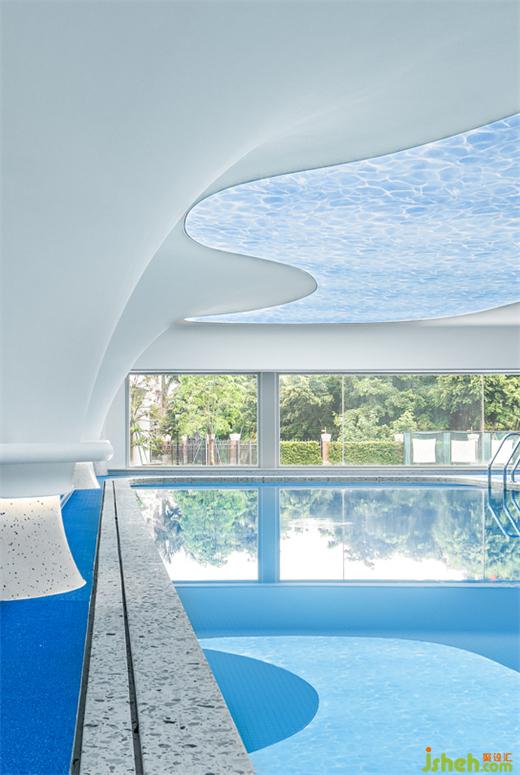廈門幼兒園設(shè)計用一種極簡而整體的形式表達(dá)出空間連貫與統(tǒng)一性,這種純粹的表達(dá)更象是水要傳遞給我們的啟迪,天花倒映的水體,形成一種空間懸浮效果,如同沉浸在水體之中。