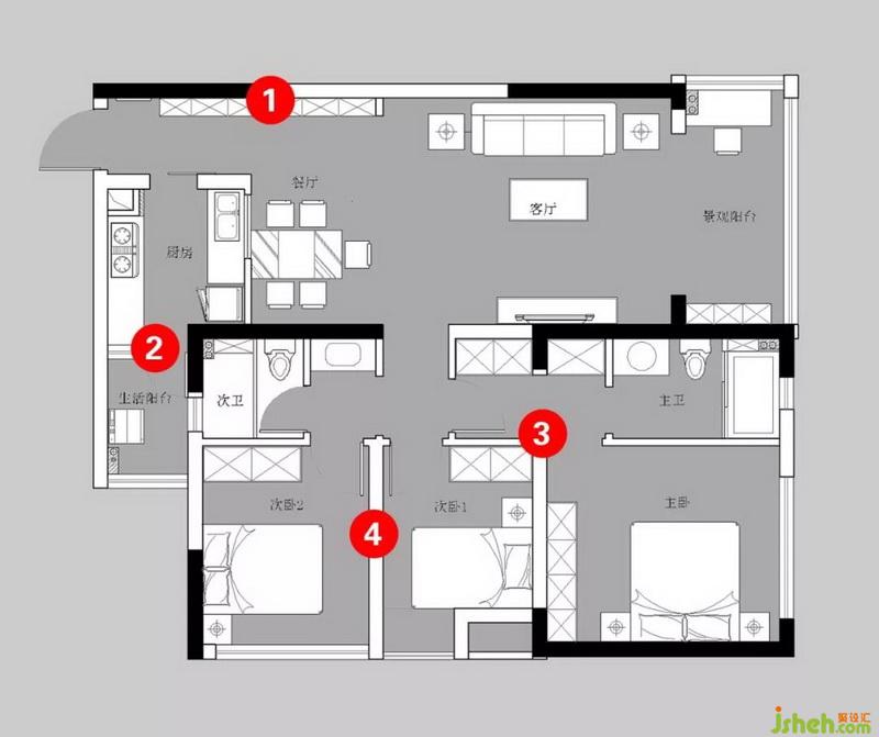 為最大限度增加儲(chǔ)物空間、把現(xiàn)有的空間開(kāi)闊化,將原來(lái)衣帽間與次臥的隔墻拆除,由一個(gè)次臥增加至兩個(gè)次臥,并將另一個(gè)次臥的空間擴(kuò)大。次臥的窗簾選取灰粉色,整個(gè)空間的清冷氣息就會(huì)瞬間變得舒緩起來(lái),散發(fā)著一股難以抗拒的輕熟魅力,與主臥相區(qū)分;依靠墻壁打造了一面收納柜,增加儲(chǔ)物空間。