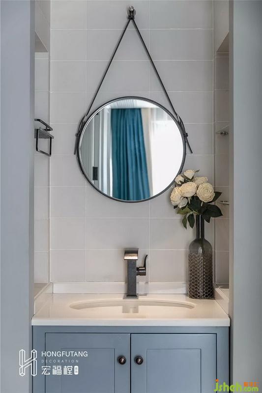 設(shè)計(jì)公司將次衛(wèi)空間干濕分離,提高使用效率的同時(shí),保證了空間的舒適度。洗手臺(tái)選用圓鏡,中和空間的方正感,縮減空間壓抑。